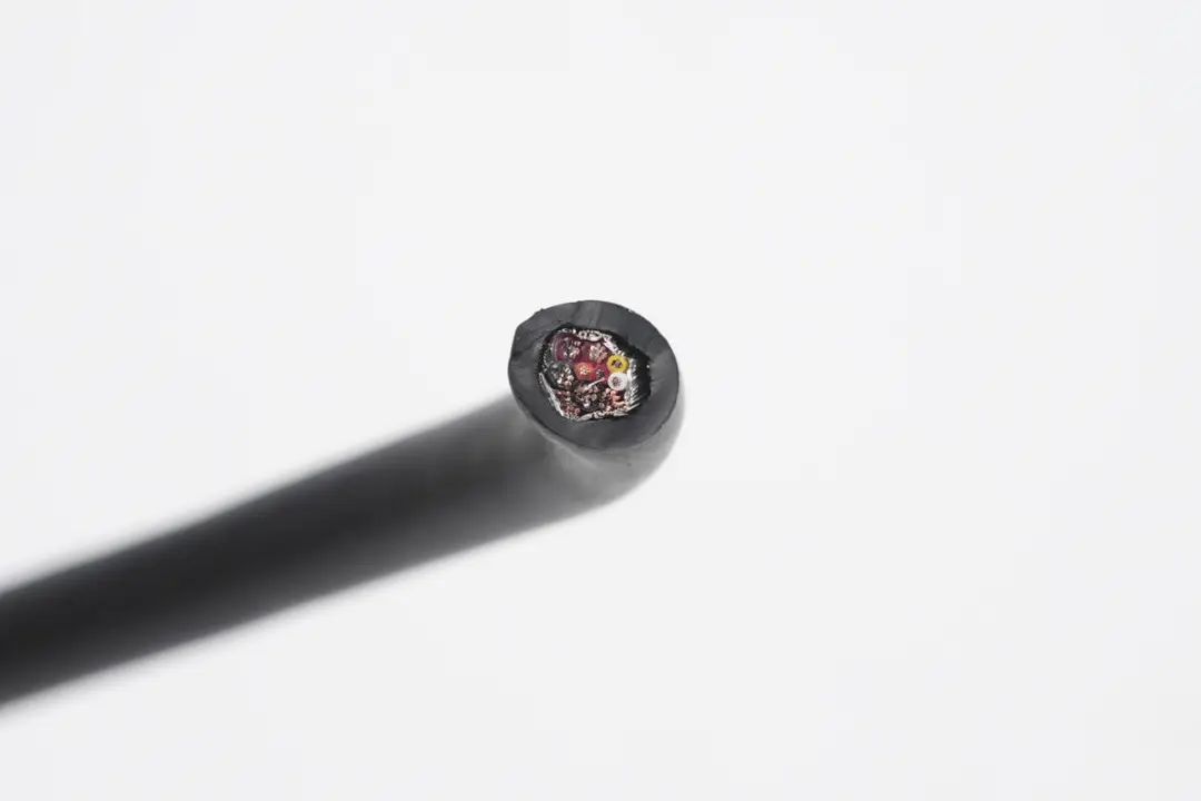 最后是線纜的拆解,線纜截斷橫截面一覽,線纜內(nèi)芯外罩屏蔽層,內(nèi)部8根線纜用于電力傳輸和數(shù)據(jù)傳輸。