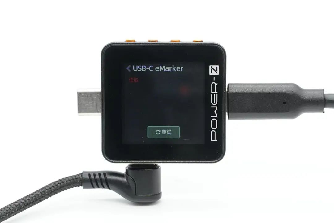 使用ChargerLAB POWER-Z KM002C沒能檢測到線纜的E-Marker芯片,實際上線纜是有E-Marker功能的,后續(xù)使用該線纜給MacBook充電功率達96W便證明了這一點。