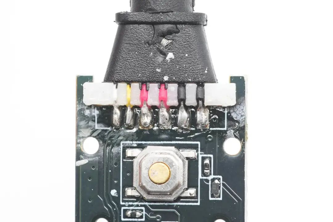 拆掉公頭的外殼,露出內(nèi)部針腳。