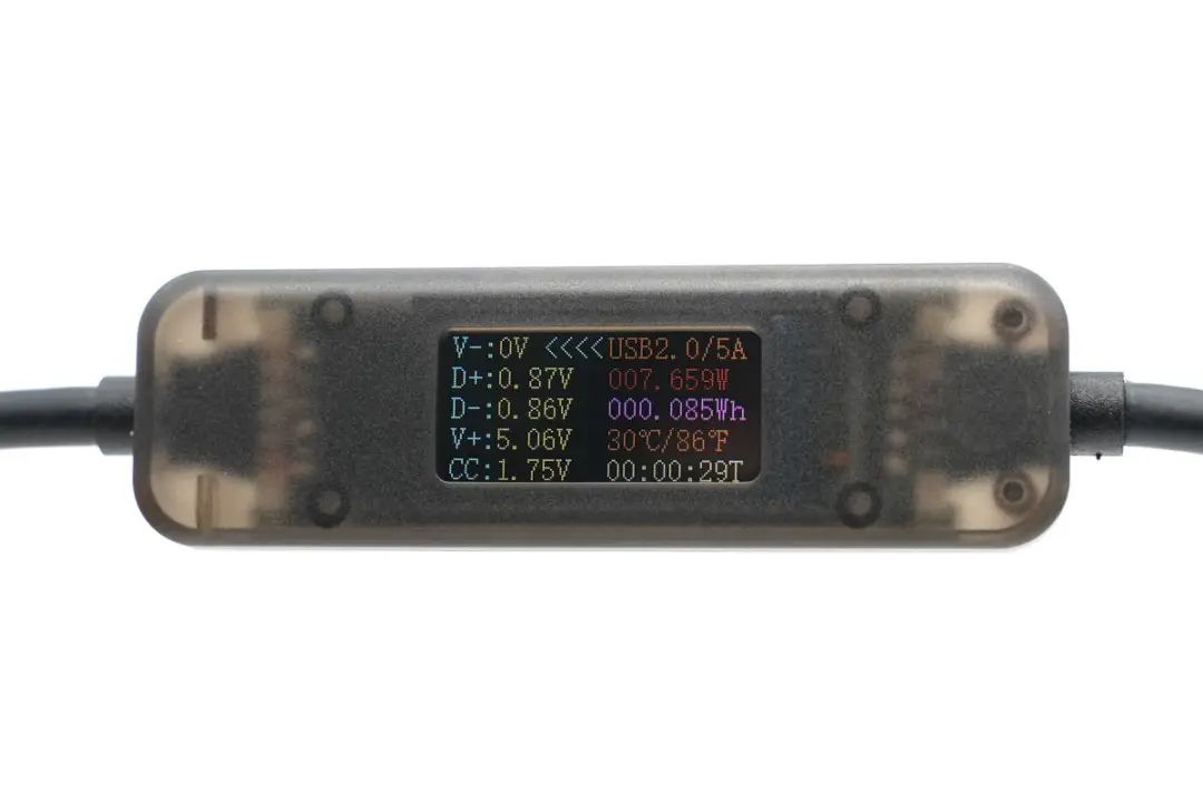 雙USB-C線纜作為大功率傳輸?shù)臉蛄海С滞ㄓ玫陌偻叽蠊β蕚鬏敚絹碓蕉嗟墓P記本電腦都采用USB-C接口進行充電。但是USB-C接口使用USB表檢測電壓電流,雖然可以了解充電狀態(tài),但并不適合普通大眾消費者。 為了滿足廣大消費者在充電過程中檢查電壓電流的需求,知名配件廠商阿卡西斯推出了一款100W的USB-C快充線,線纜自帶0.96英寸顯示屏幕,可以實時顯示當前充電器的輸出電壓和電流,方便消費者了解設(shè)備的充電情況。 充電頭網(wǎng)已經(jīng)拿到了阿卡西斯這款100W數(shù)顯快充線,下面就進行拆解,看看這款線纜是怎么設(shè)計的。