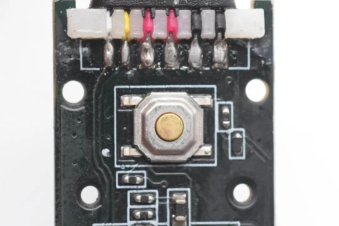 切換模式的微動按鍵特寫,按鍵下方是用于檢測溫度的熱敏電阻。