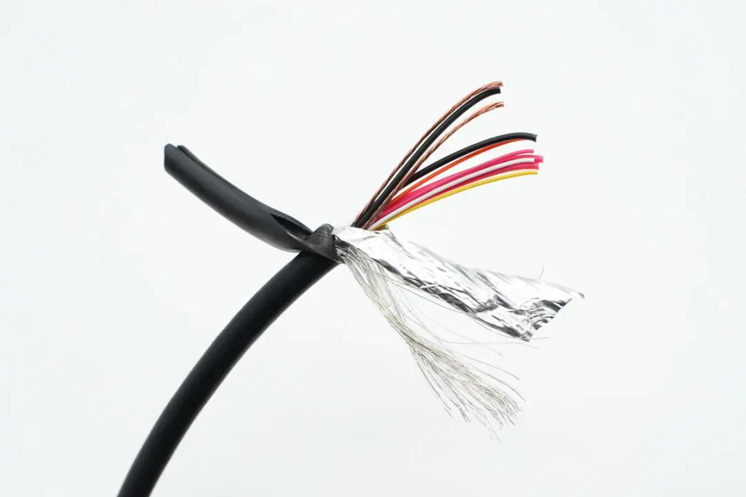 切開外皮,下面是一層屏蔽網(wǎng),通過上面的拆解,屏蔽網(wǎng)作為數(shù)據(jù)線的負極使用。屏蔽網(wǎng)下面是一層屏蔽濾波,包裹線纜內(nèi)芯。