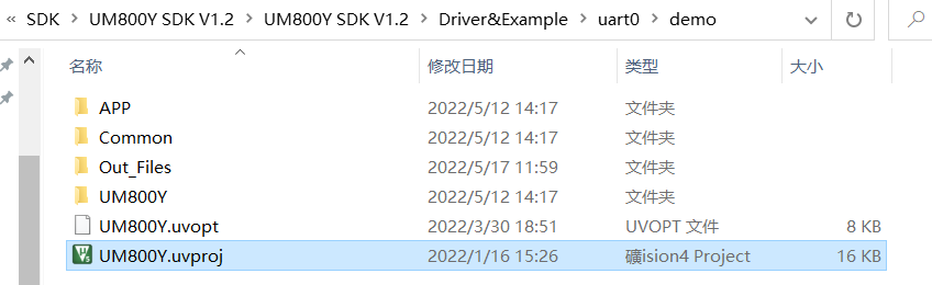 接下來打開示例工程,下面以Driver&Example/uart0示例為例作為描述,打開SDK目錄,如圖5所示: